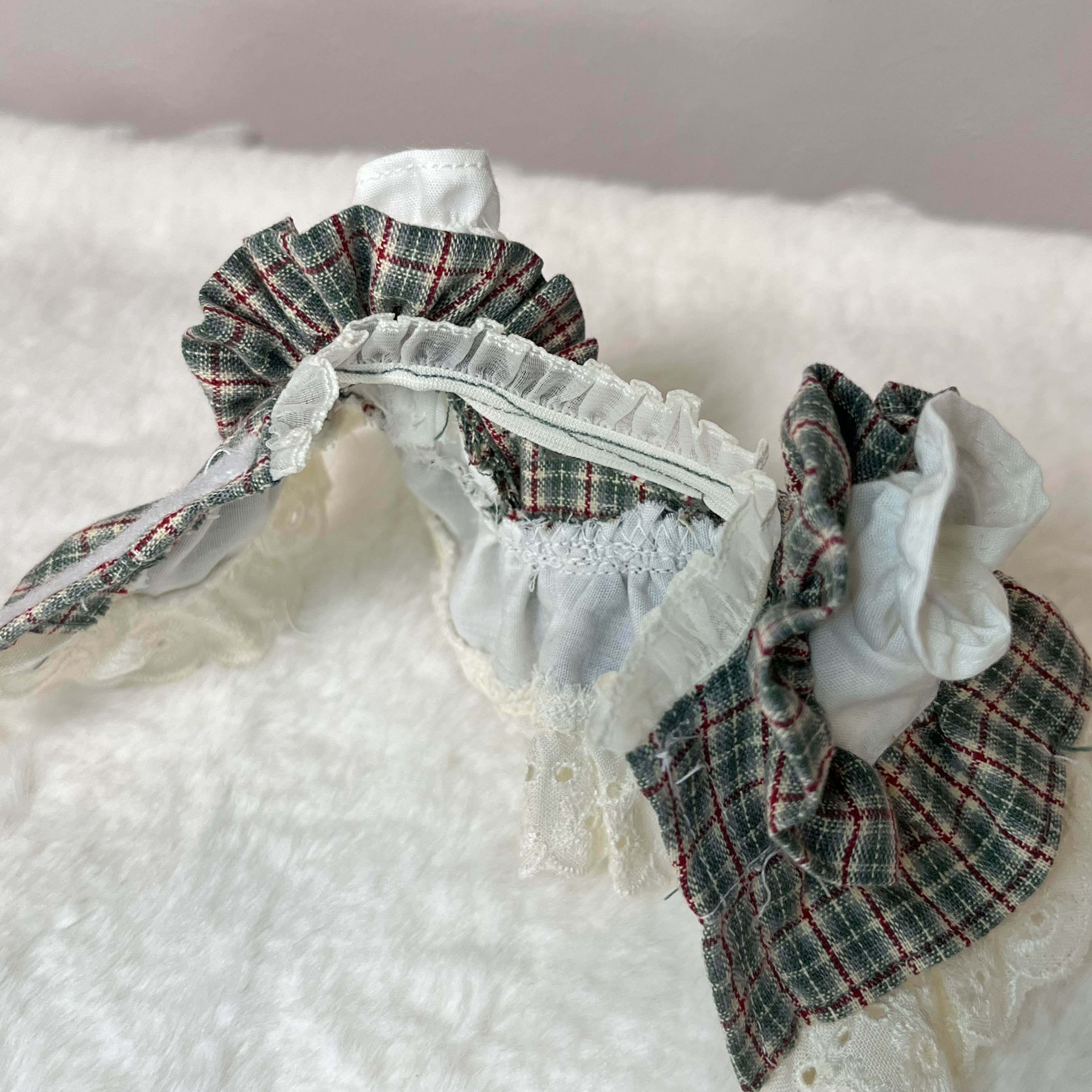 ぬいcosフリマにて頒布したクリスマスワンピースno14にデザインを寄せて新たに制作した服です。
