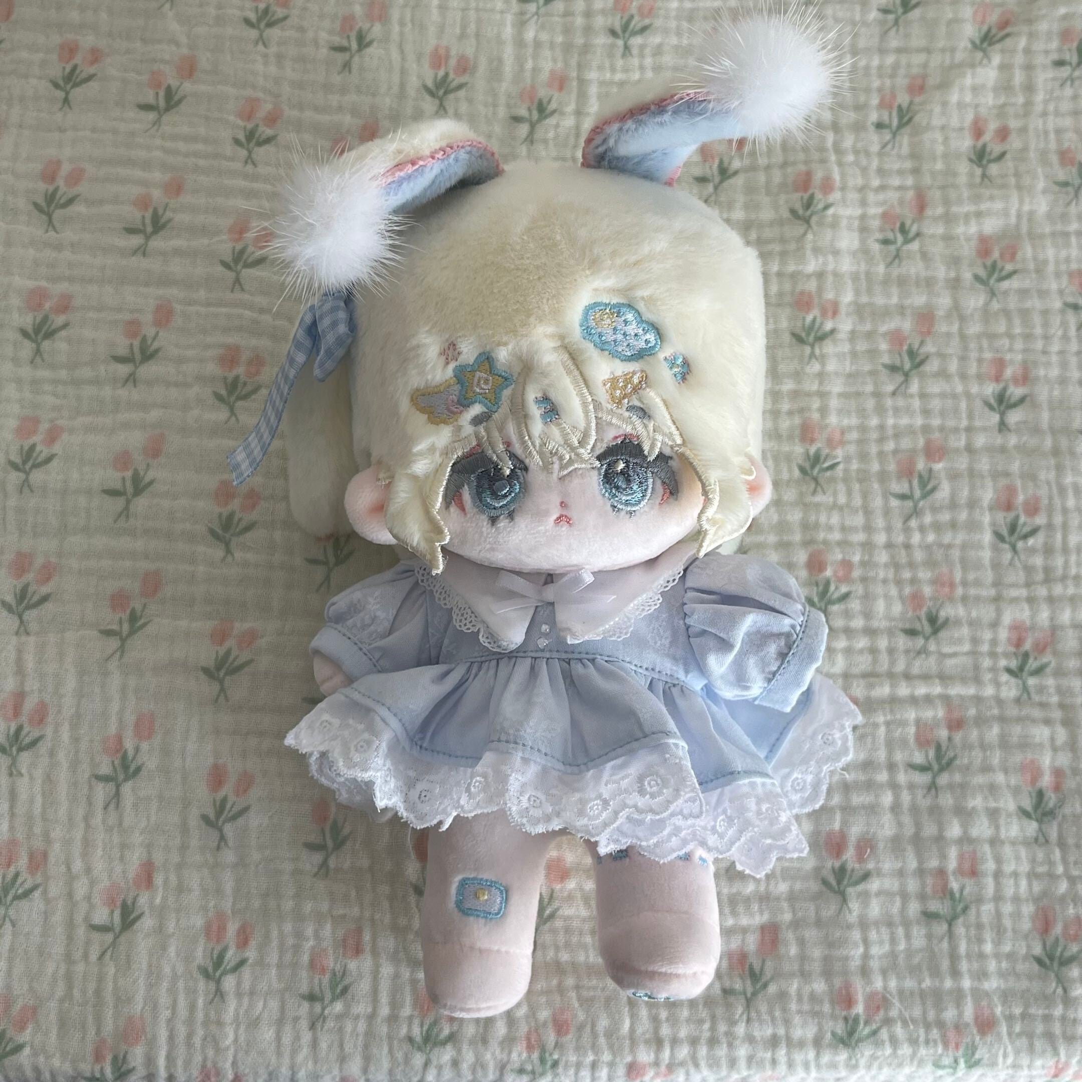 15cmぬい服 水色ワンピース(角襟)no.34